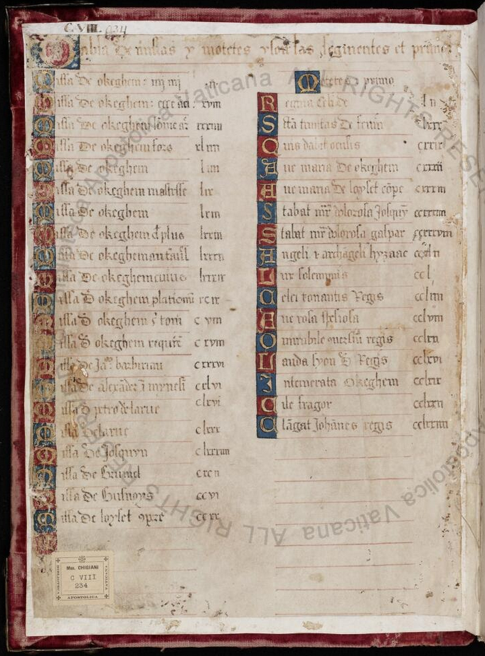 Pertence à coleção da Biblioteca Apostólica Vaticana, estando catalogado como Chigiana, C. VIII. 234.